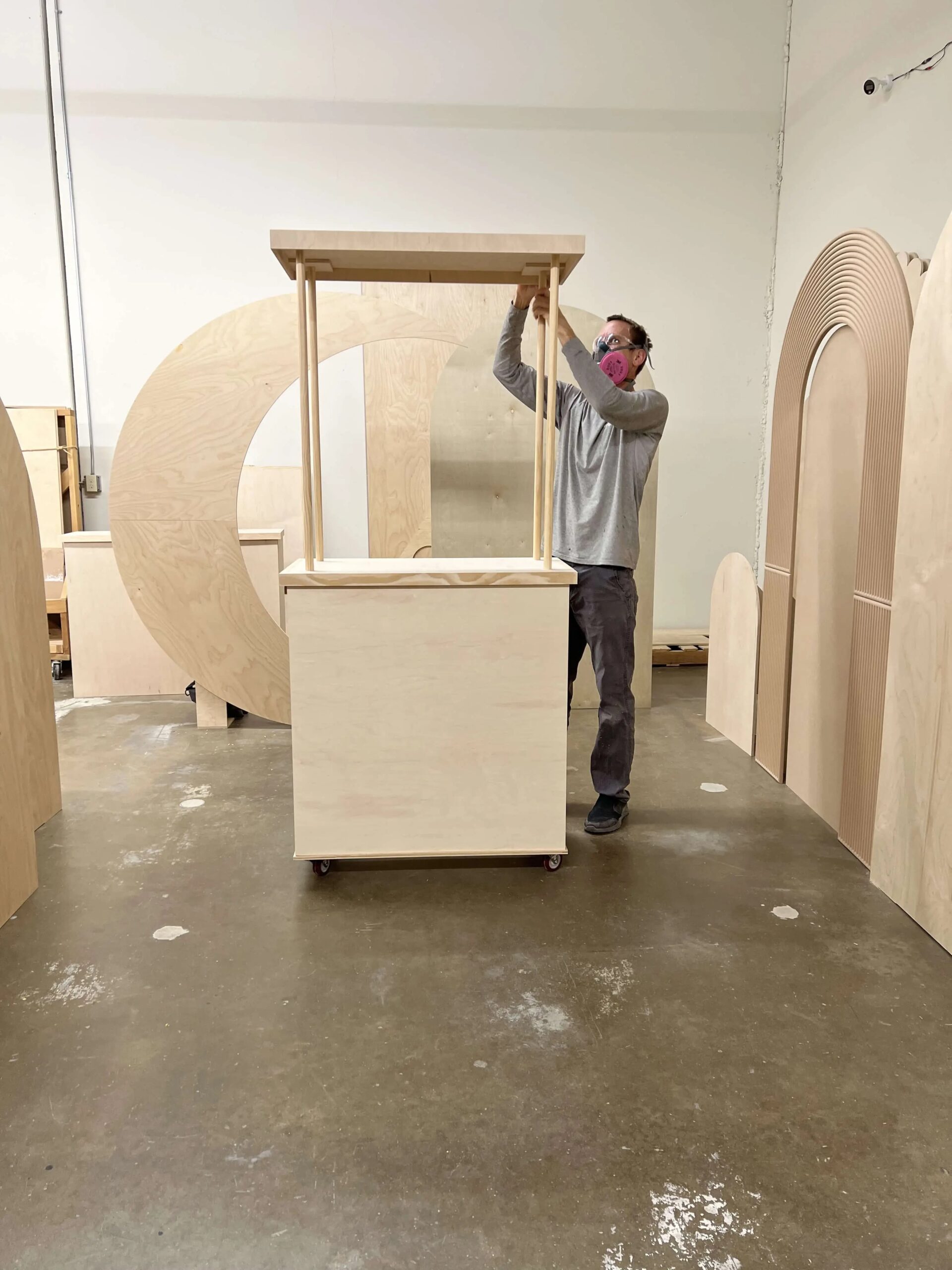 Start by sending us a picture or sketch of what you have in mind, along with the dimensions and any specific details you need. Whether it’s a mobile bar, a modular wall, a backdrop, a trade show booth, or a custom cart, we’ll work with you to bring your idea to life.